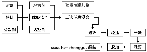 流延法制備陶瓷薄片(piàn)的(de)工程流程图(tú)。