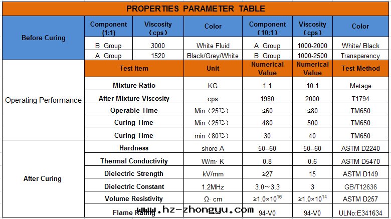 Two-component thermal silicone encapsulants , use imported organic silicone as the main material , select the polymer materials as fillers, manufactured electronic pouring sealant . It has heat conducting , flame retardance, adhesion , sealing, waterproof, encapsulation properties .