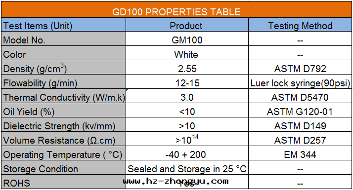 GD100 Thermal Paste is using organic silicone as the main raw material, add heat resistance andexcellent heat conduction performance materials as thermal conductive filler,made into thermal conductive filling gap paste. It is a pre cured colloid, don't need to prevent curing after assembly,save time, improve production efficiency .