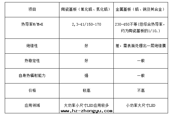 表(biǎo)1 陶瓷散热(rè)基板與(yǔ)金(jīn)屬散热(rè)基板比較